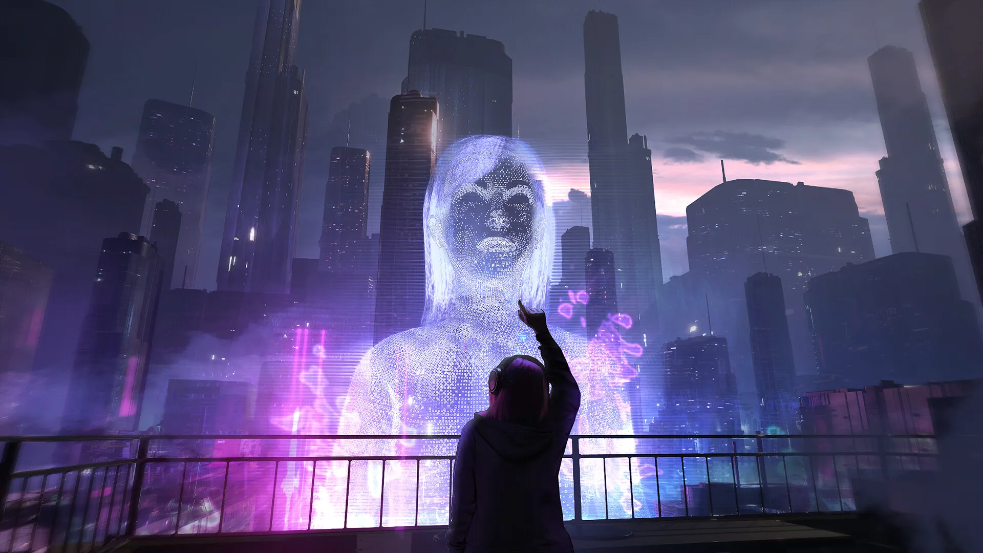 粉色的晚霞与未来主义的楼丛。